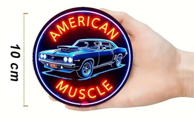 - 6er-Set Vintage Retro Neon *MUSCLE CAR* Holzuntersetzer
